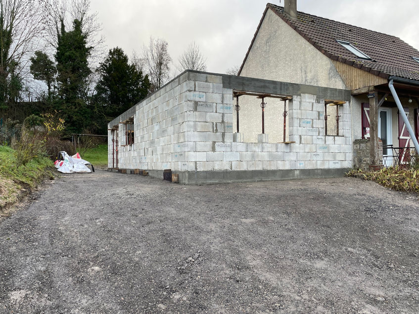 Voici un aperçu d'un agrandissement, en cours de réalisation, d'un pavillon à Marseille-en-Beauvaisis.