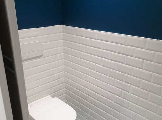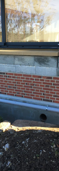 Gros œuvre, isolation et plâtrerie, pose de parement de brique en soubassement.